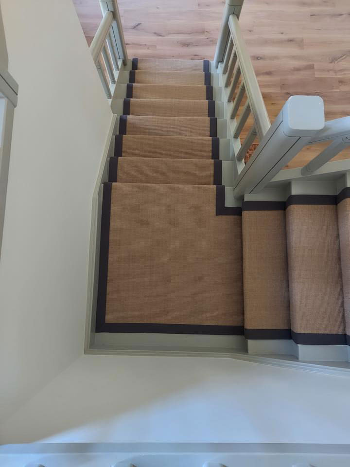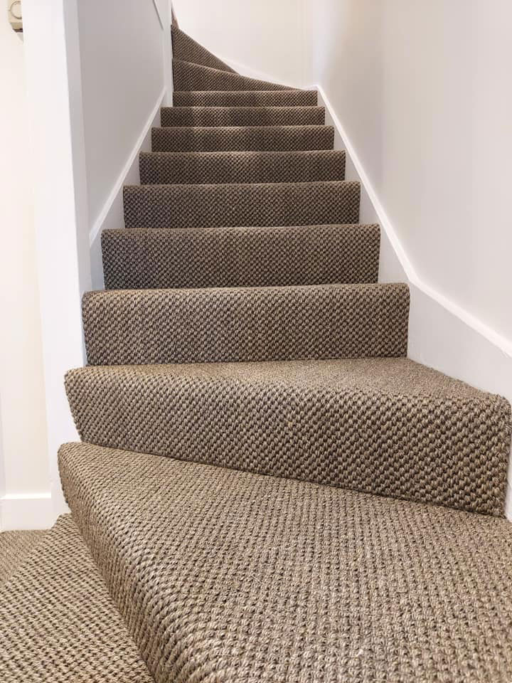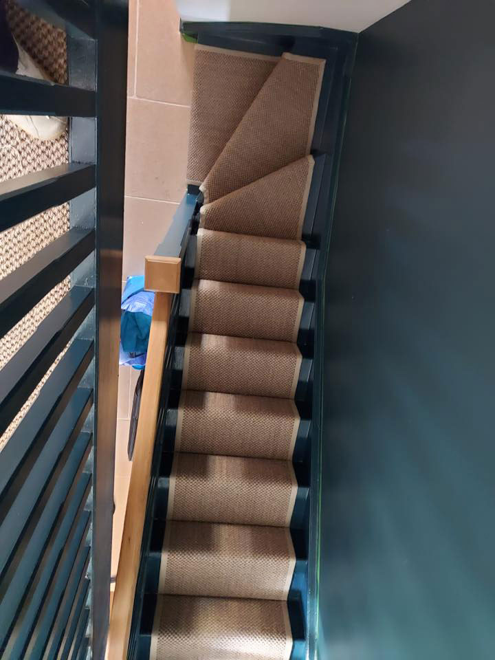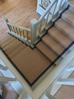 Natural flooring is a great choice for a floor covering as along with its uniqueness it gives a fashionable wow factor that is difficult to achieve with traditional carpets. Also natural flooring is an excellent material to have edged as bespoke rugs or stair runners. Meaning we can create any shape or any size to suit your home. You can see some of our stair runners with trim and full floored carpets pictured below.